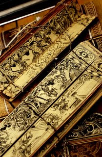 of cotton, because the colors on it came from a special tree that needs a special treatment. Even though there are a lot of visitors come to this place but they have less interest in buying the souvenirs, stated by I Made, a mini lontar leaves painter.